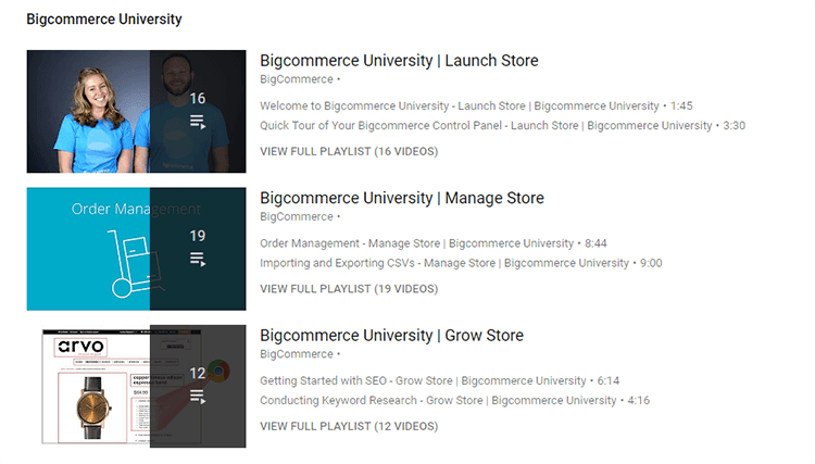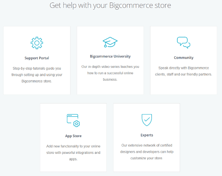 The Bigcommerce support system for its users is expansive, to say the least. The company has a strong customer focus and offers a resource center loaded with articles, guides, and videos. This knowledge base includes the Bigcommerce University video tutorial page, a support portal, and a community forum. There is even a spot where design and development experts from Bigcommerce help you customize your store.