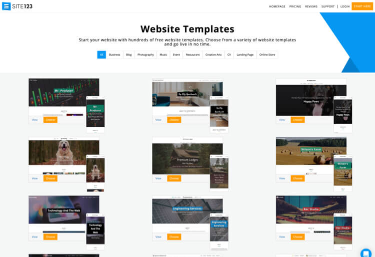 Templates are probably the one area where SITE123 comes up a little short. While other site builders offer massive galleries of pre-made templates that are tailored to specific needs and industries, SITE123 doesn’t have templates in the traditional sense.
